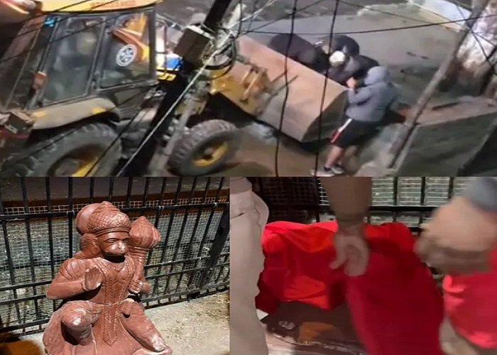 रायपुर : राजधानी रायपुर के धरमनगर में सोमवार की रात लगभग 2 बजे जेसीबी से गौ शाला में तोड़ने और भगवान हनुमान की मूर्ति खंडित दी गई. इस दौरान हथियार से लैस 2 दर्जन लोगों ने धमकियां दी. गौ शाला का शेड गिरने से दो बछड़े की दबकर मौत हो गई. 32 सालों से गौशाला का संचालन करने वाली दंपती को जान से मारने और उनकी बेटियों के अपहरण की धमकी दी गई.
